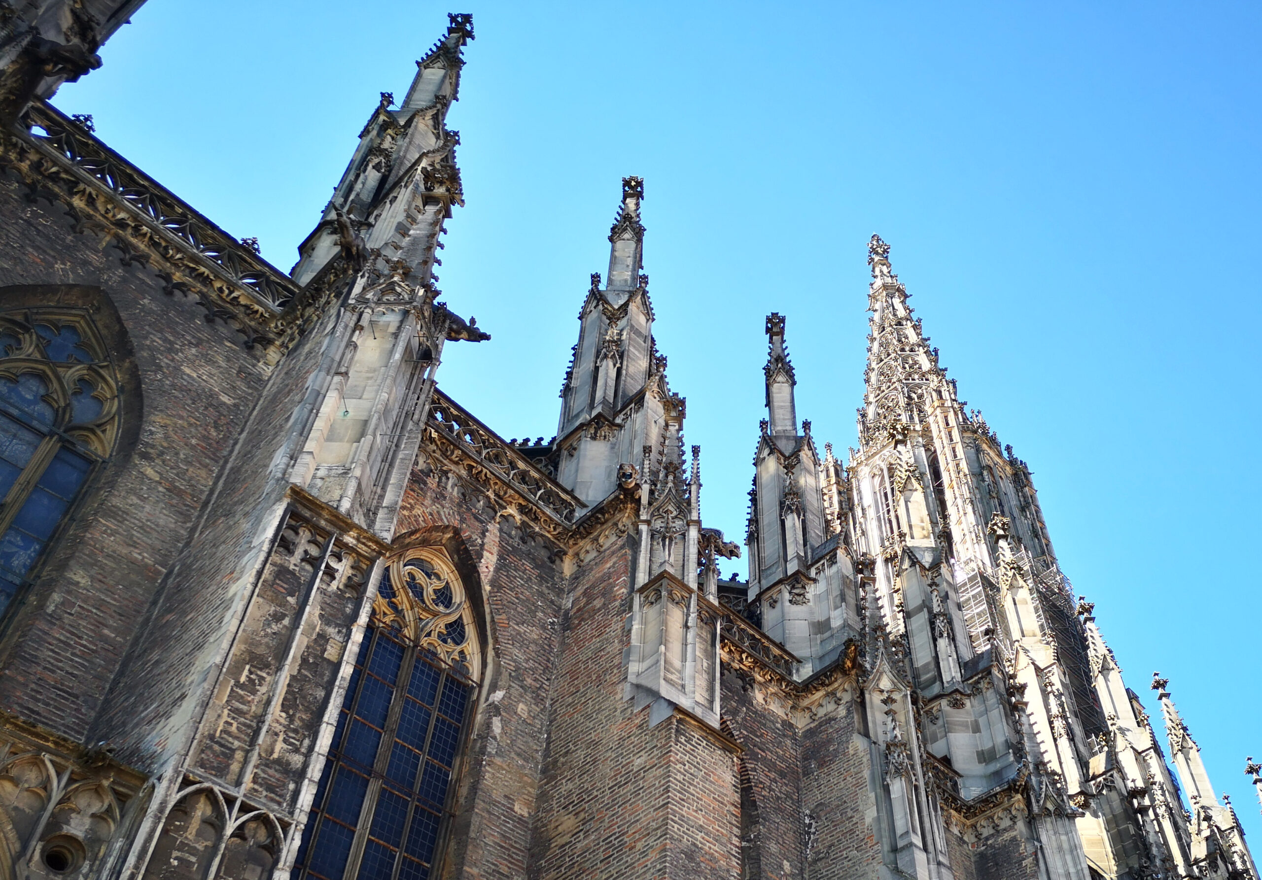Das Ulmer Münster ist weltweit bekannt für seine außergewöhnliche Architektur. Dieses Foto zeigt die imposante Außenansicht des Münsters in all ihrer Pracht. Das Ulmer Münster ist ein beliebtes Motiv für Fotografen und Besucher der Stadt und ein echter Blickfang. Mit diesem Foto können Sie die Schönheit des Ulmer Münsters jederzeit und überall genießen.